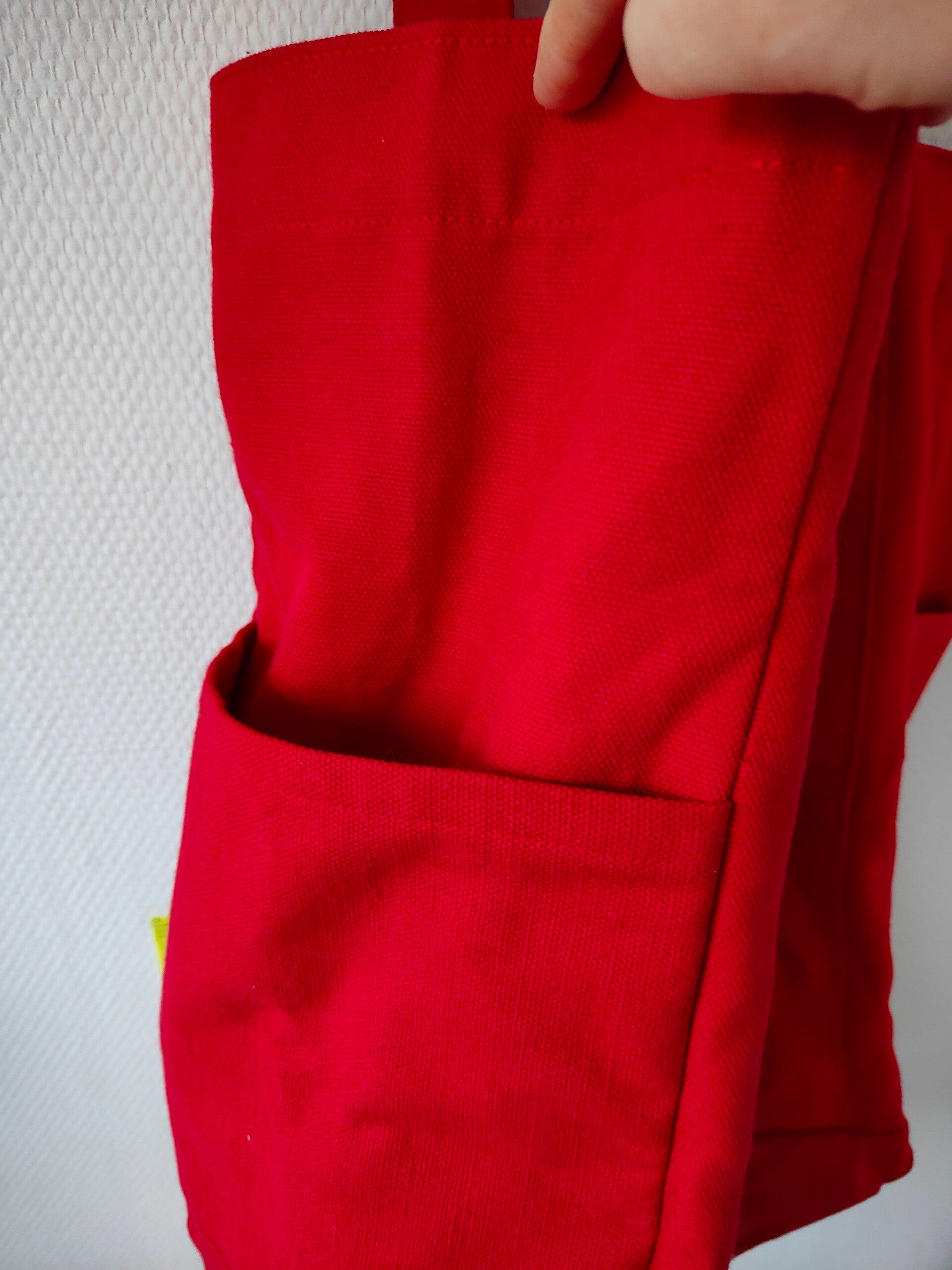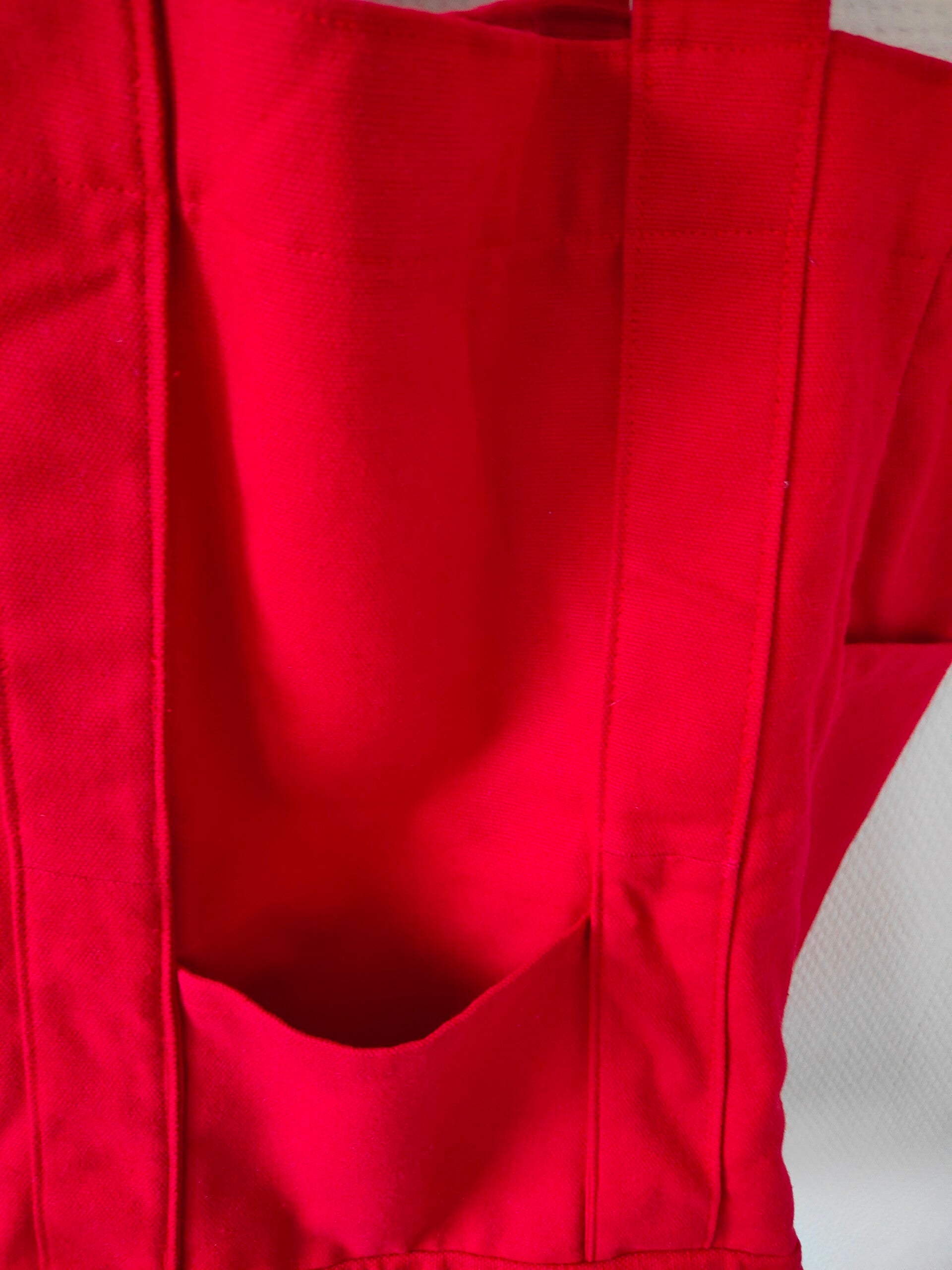 Large red shopper bag. The bag is made of thick cotton. shoulder bag with lining. There is an internal pocket and a clasp. The shopper is perfect for mothers with babies, for shopping trips, as a beach bag. it is very roomy.