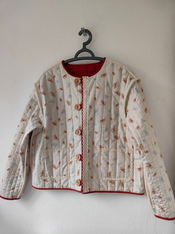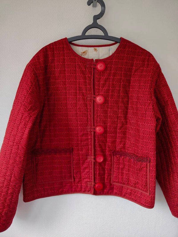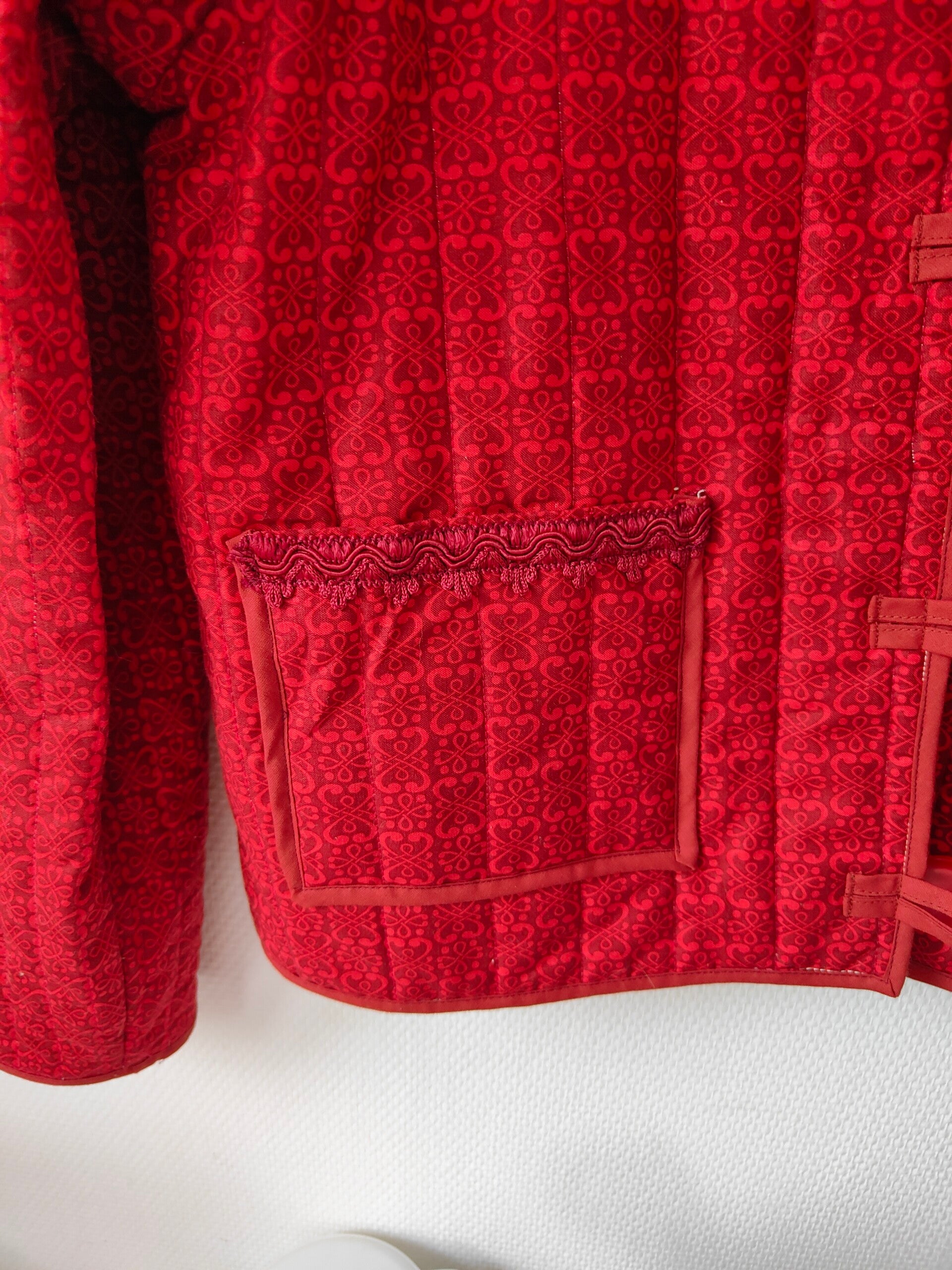 dubbelzijdig gewatteerd rood jasje met etnisch patroon / double-sided quilted jacket ethnic pattern
